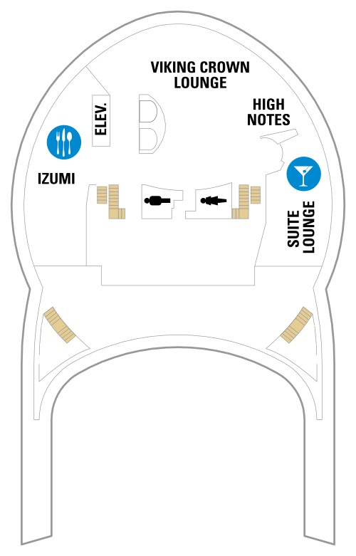 • Salon Viking Crown Lounge : La touche personnelle Royal Caribbean. Situé bien au-dessus de l'océan, ce salon très confortable offre des vues panoramiques spectaculaires à 360° pendant la journée avant de se transformer en club de jazz animé le soir.
