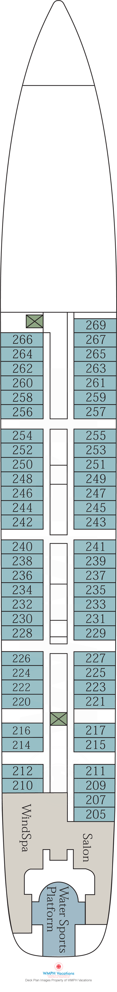 Wind Surf est le navire amiral de la flotte. Ce yacht à moteur et à voile à cinq mâts peut accueillir 342 passagers et vous emmener dans les endroits les plus exotiques. La luxueuse réception vous accueille avec de belles finitions et un mobilier de qualité. Le navire est connu pour son environnement élégant et décontracté, jamais réglementé, avec des points forts tels qu'une plate-forme de sports nautiques en plein air équipée de planches à voile, de matériel de plongée, de skis nautiques, de voiliers et de kayaks. Le Yacht Club est le « salon » du navire décoré de groupes intimes de canapés et de chaises confortables, parfaits pour lire, se tenir au courant des nouvelles ou profiter d'une bonne conversation. Le navire est également équipé d'une piscine, de deux jacuzzis, d'un centre de remise en forme, d'un salon et d'une galerie d'art. Les quatre restaurants à bord sont tenus par le meilleur équipage en mer et servent une excellente cuisine gastronomique. Dans votre cabine, vous attendent les bols de fleurs et de fruits frais, signature de Windstar, de riches têtes de lit capitonnées, des couleurs douces, de beaux tissus d'ameublement et des draps en coton égyptien de qualité supérieure. Toutes les cabines offrent une vue sur l'océan et beaucoup d'espace.